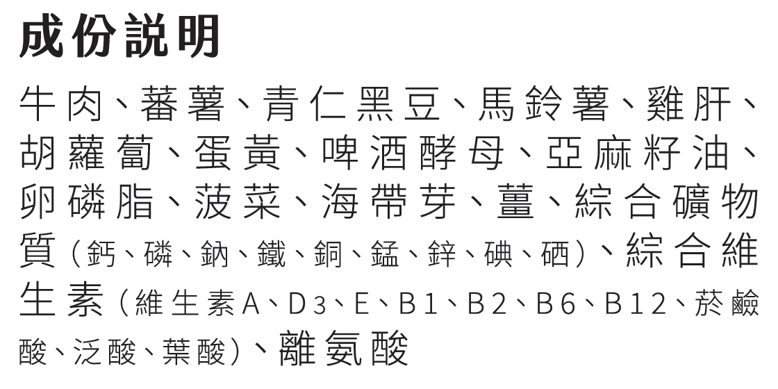 ・符合美國AAFCO及歐盟FEDIAF雙重營養標準,可安心天天食用